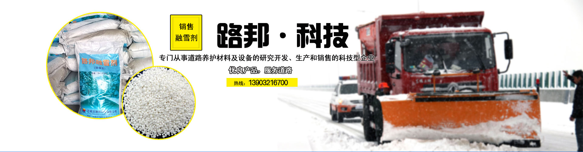 石家莊路邦科技有限公司成立于2001年3月,2001年7月被河北省科學技術廳認定為高新技術企業,是專門從事道路養護材料及設備的研究開發、生產和銷售的科技型企業,并擁有自營進出口權。 公司依托河北省交通科學研究所和河北工業大學,長期從事交通科研工作,具有較強的科技創新和研發能力,目前主要產品——環保型系列融雪劑、除冰劑、路面...